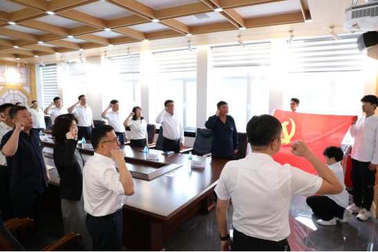 最后全体参会党员在校纪委副书记黄文日的带领下,高举右拳,重温入党誓词。铿锵有力的誓言在会议室久久回荡,彰显着党员们对党的忠诚与为党育人、为国育才的坚定决心。